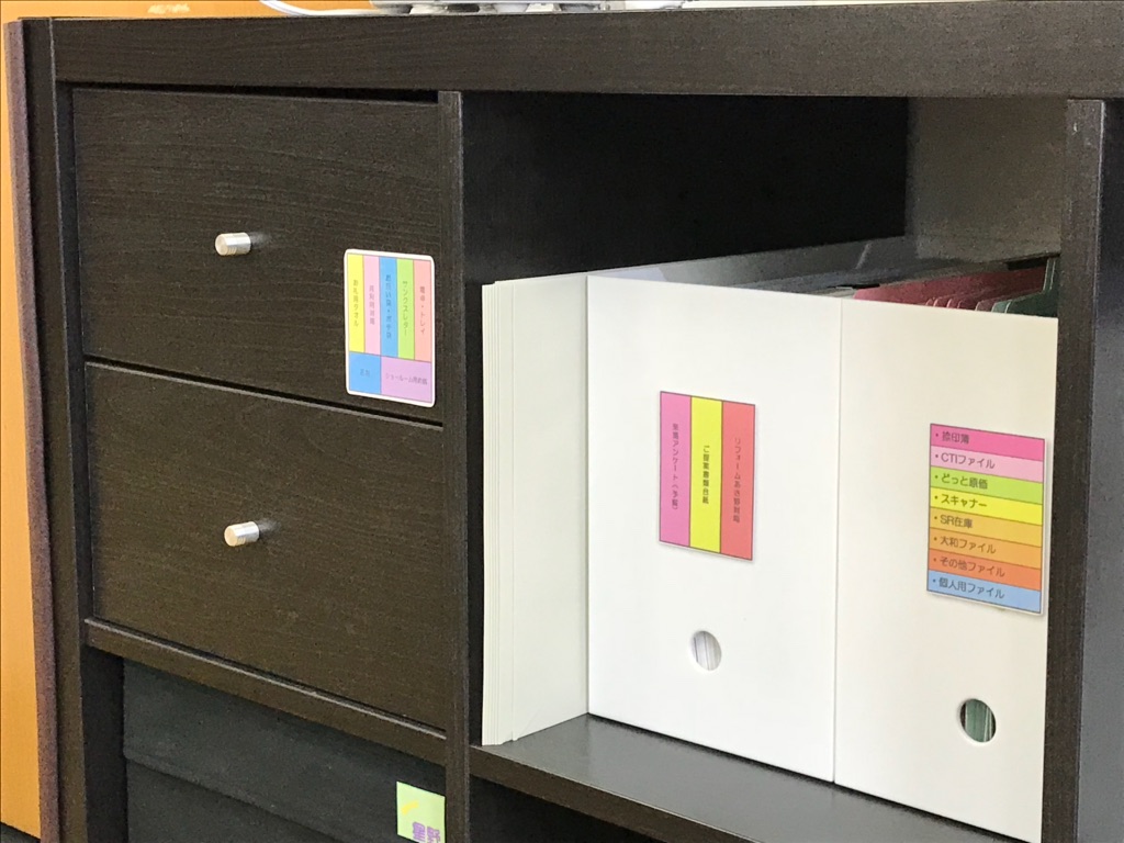 事務所の引き出しや書類BOXも整理しやすくラベリング